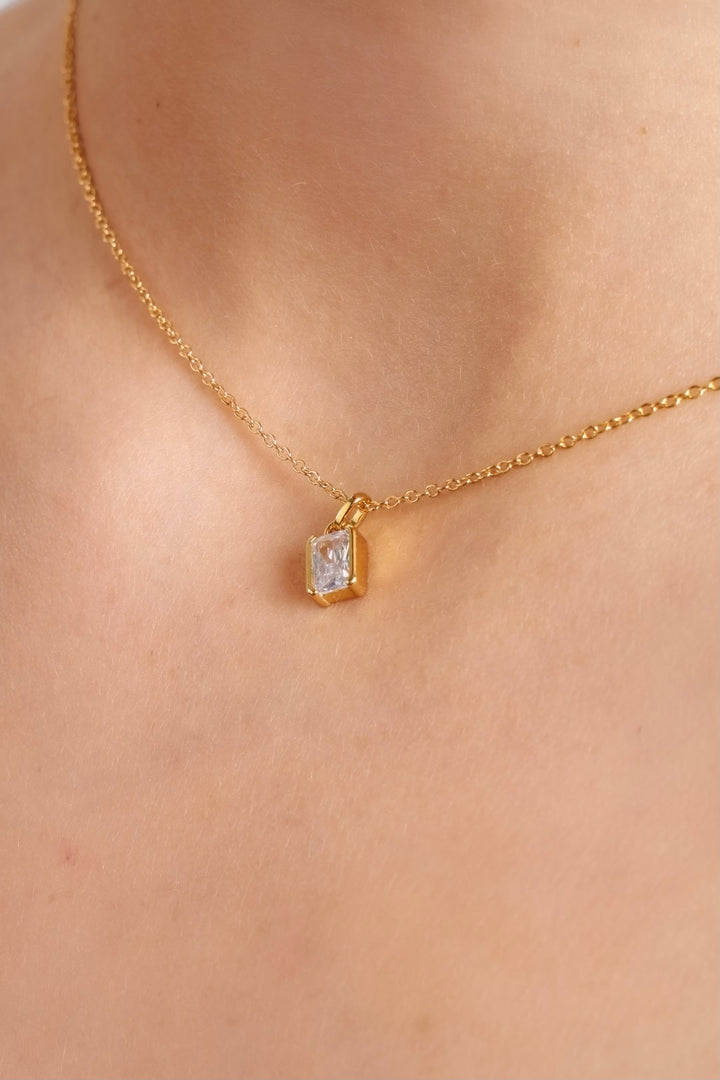 يجمع عقد الجوهر اللامع الفاتن بين الأناقة والفخامة في تصميم مستوحى من الجمال اللامتناهي. مصنوع من 16K ذهب الفضة، ليضفي إشراقة استثنائية على إطلالتكِ.