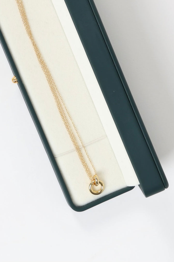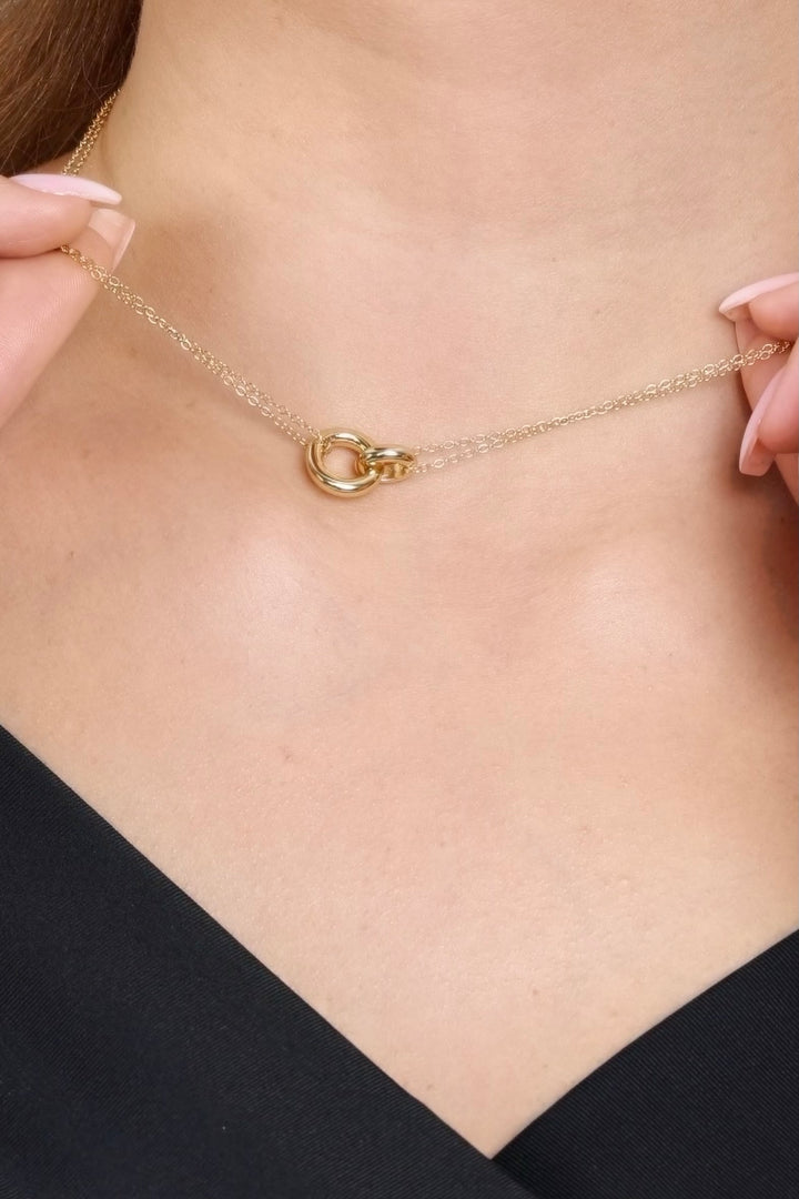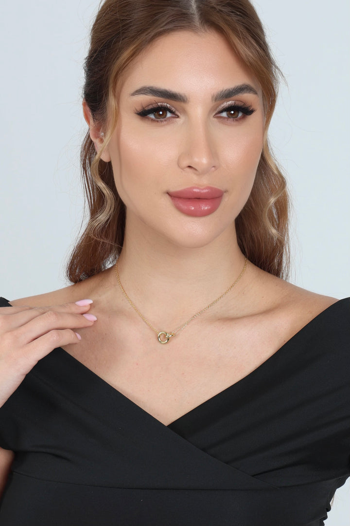 يتميز عقد ماسي من حلقتين بتصميمه الراقي الذي يرمز للمحبة الأبدية. مصنوع من 16K ذهب الفضة، ويضفي لمسة من الفخامة والتألق على إطلالتكِ.